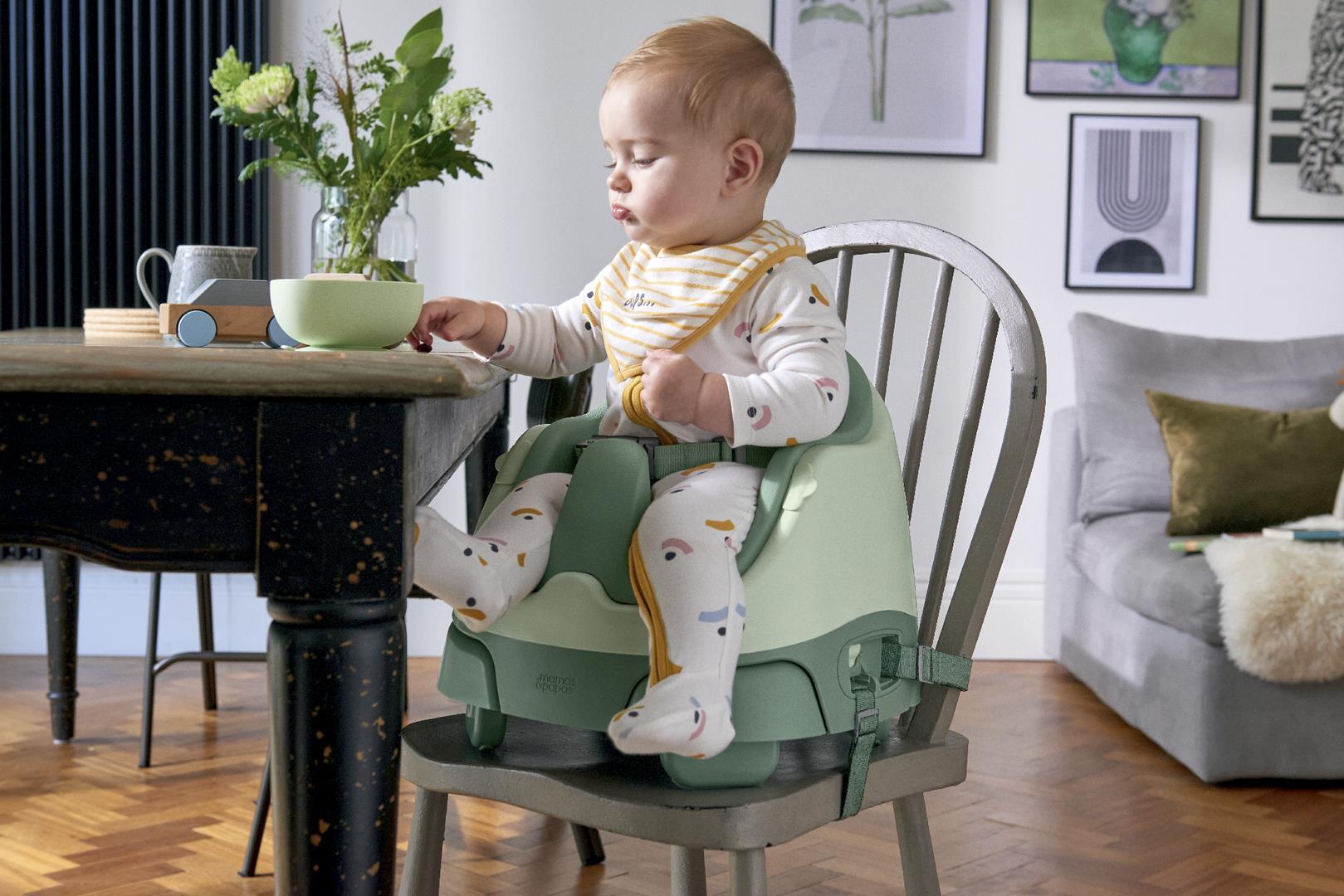 Aile yemek zamanları için bir yemek sandalyesine bağlanabilir